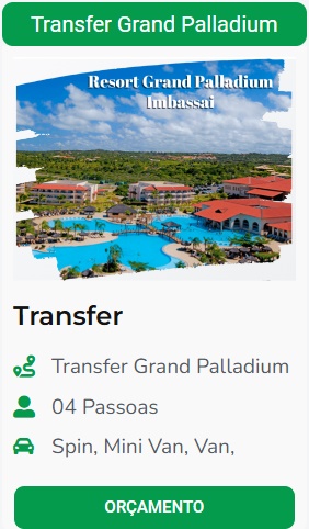 Transfer Gran Palladuim Imbassaí que está localizado no município de Mata de São João há 68 km do aeroporto de Salvador.
